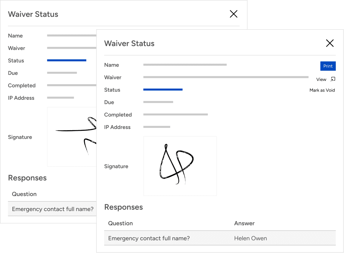 View waiver status directly in your course manifest or customer record. Show the correct waiver on the correct activities.