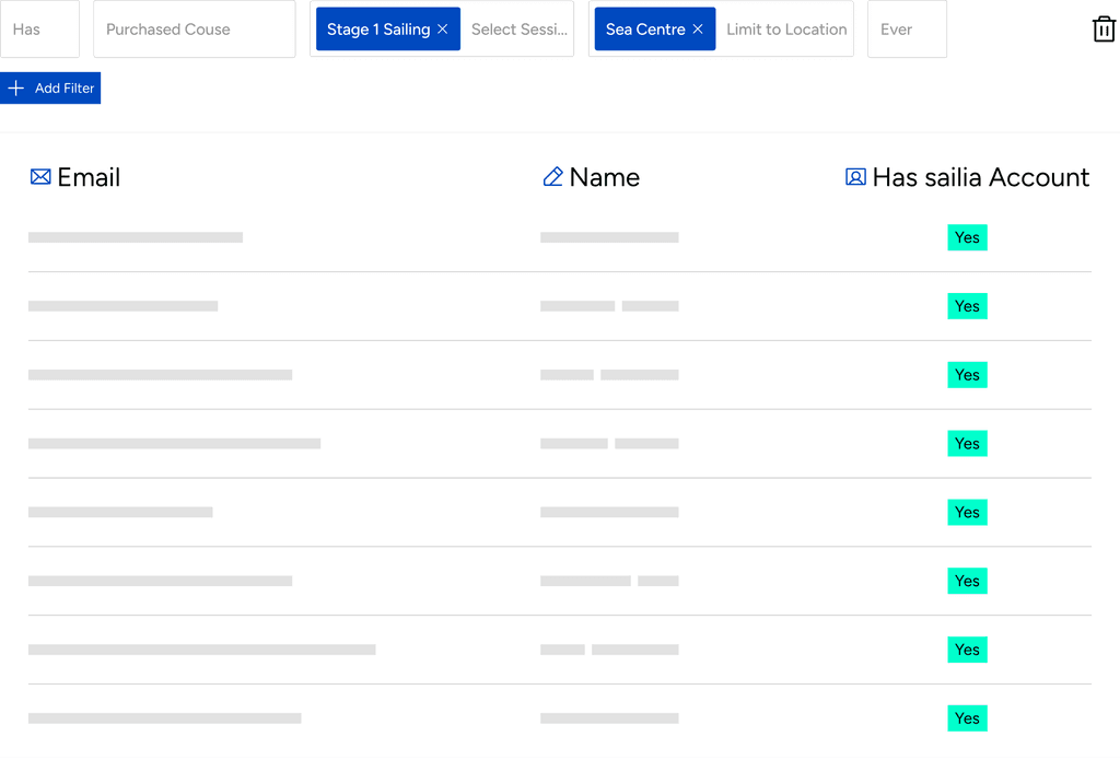 Create, target, and track - all without leaving Sailia. Send campaigns to anyone who’s booked, cancelled, or drifted away. With dynamic filters, real-time data, and Google Tag Manager integration, your marketing finally runs where it needs to.