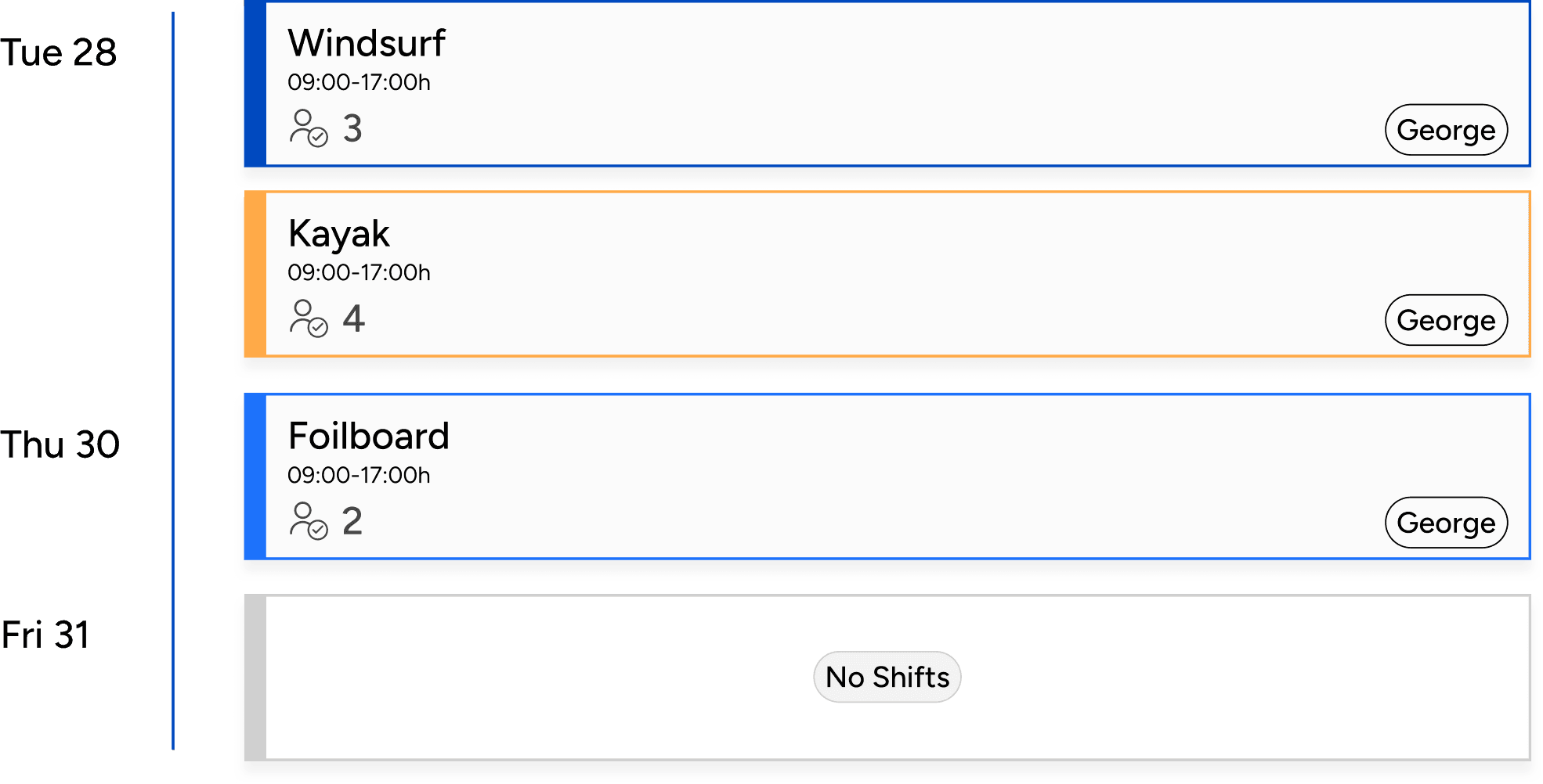 Sailia pulls everything together - rotas, sessions, hours, kit, and timesheets. Sailia knows your staff’s availability, qualifications and pay. Turn staffing from a 2 hour project into 2 minute task.